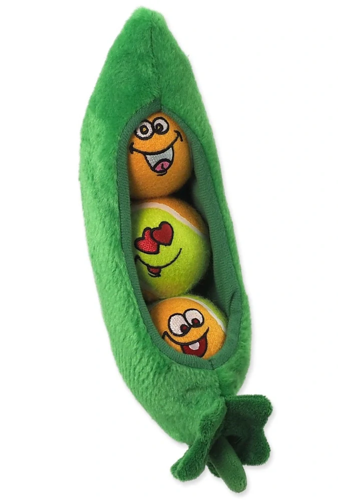 Nevšední multifunkční hračka - tři veselé pískací tenisové míčky v plyšovém šustícím lusku. Pejsek se zabaví vytahováním tenisáků z lusku, do lusku lze pak schovat i jinou oblíbenou hračku nebo i pamlsek