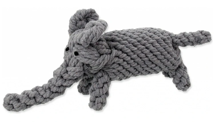 Bavlněný slon s mohutným tělem (obvod těla 28cm), relativně těžká hračka vhodná spíše pro střední až větší plemena psů.