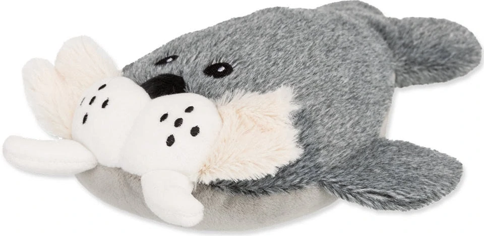 Roztomilý plyšový mrož z řady Be Nordic, tělo plněné dutým vláknem, s pískátkem v bříšku, ploutvičky šustící.