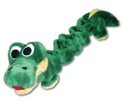 Velký plyšový krokodýl, s pískátkem v krku, dlouhým natahovacím tělem s gumou, cinkátkem uvnitř těla před ocáskem. Víceúčelová hračka, která zabaví i více psích parťáků najednou :o)