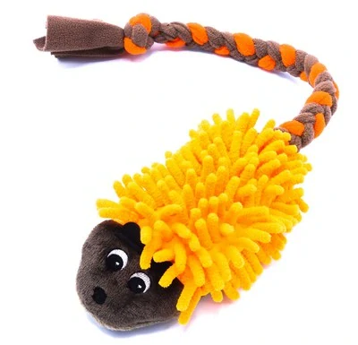 Plyšový ježek s "mopem"a s ocáskem pleteným z fleecu. Tělíčko ježka není plněné, obsahuje pískátko.