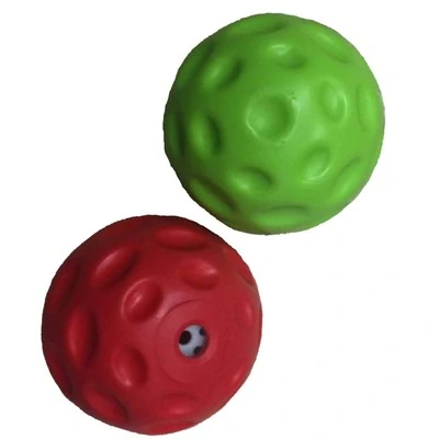 Míček z odolné termoplastické gumy, vydávající při zatřepání zajímavý zvuk. Vhodný i pro hru ve vodě - je plovoucí. V červené nebo zelené barvě, dle dostupnosti skladu.