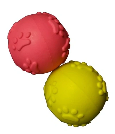 Míček z termoplastické gumy, s reliéfem tlapek, neklouže z tlamy, dutý, pískací. Ve dvou barvách (růžová, zelená) dle dostupnosti skladu.
