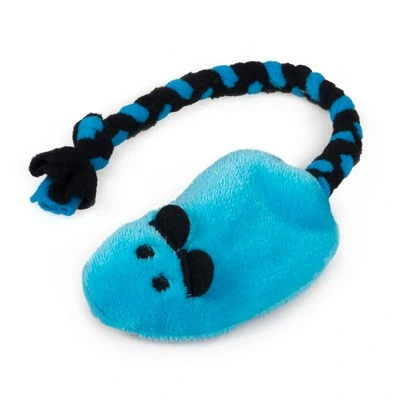 Myška z jemného plyše s dlouhým pleteným fleecovým ocáskem. Tělíčko myšky je šité ze dvou vrstev, není plněné, ukrývá pískátko. Lehká hračka i pro nejmenší pejsky a štěňátka. Díky ocásku vhodná na přetahování.