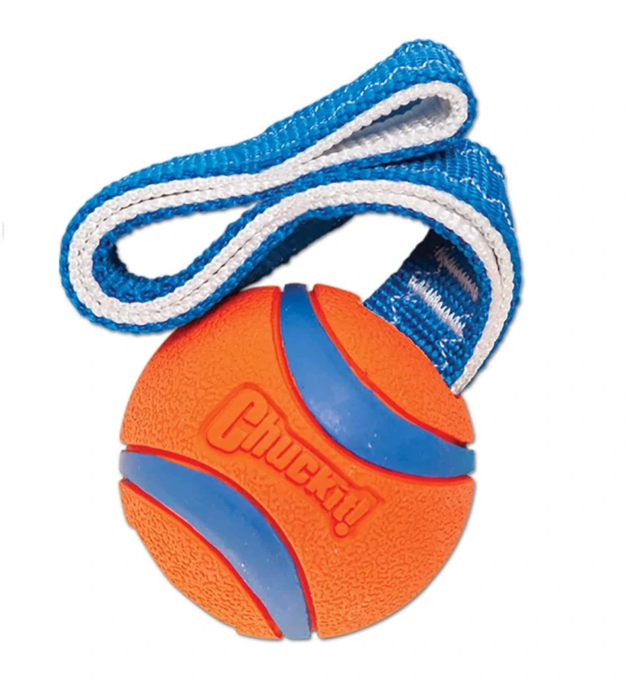 Odolné přetahovadlo - míček s pevným poutkem pro snazší házení i přetahování. Pro menší nebo střední pejsky.