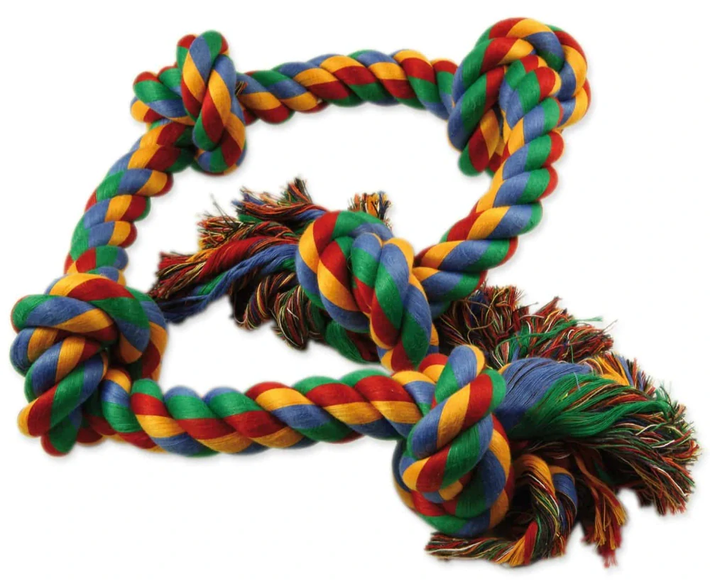 Dlouhý a mohutný bavlněný uzel s pěti suky, skvělý pro přetahování pro větší plemena nebo i více psů. Při hře si pes mechanicky čistí zuby.