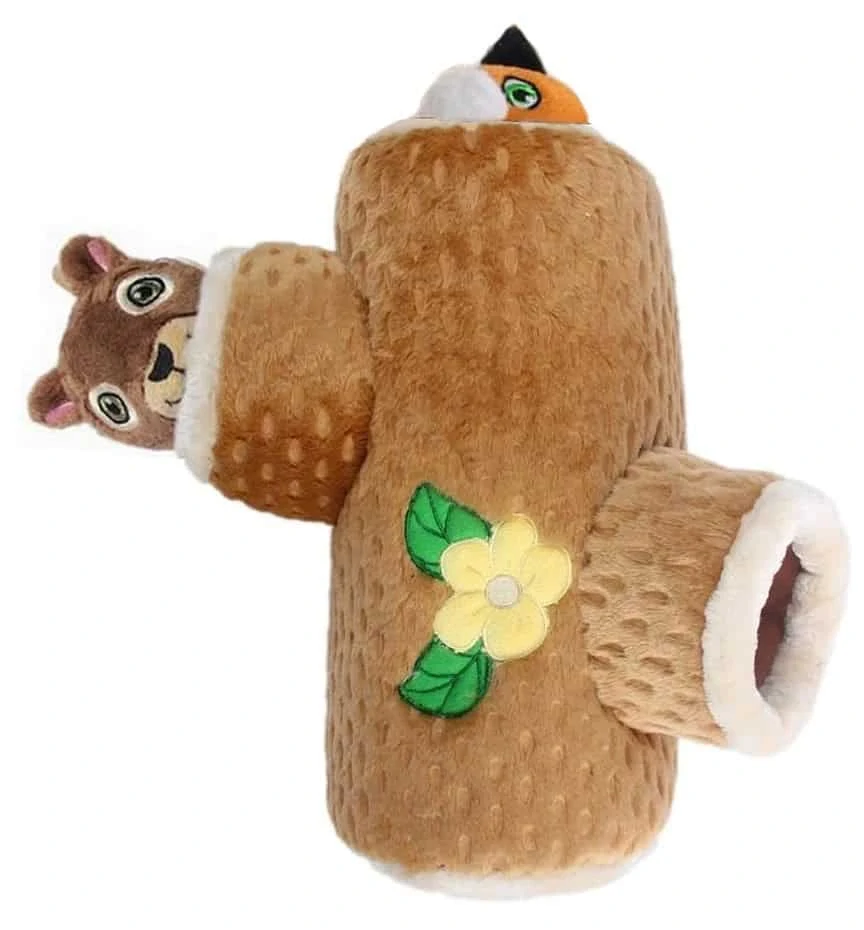 Plyšová zvířátka - liška a veverka, schované v kmeni se třemi otvory. Pejsek se zabaví hledáním zvířátek v kmeni, zvířátka pak mohou sloužit i jako samostatná hračka. Plyšový kmen se dá naplnit i jinými oblíbenými hračkami a hru tak pejskovi zpestřit. Zvířátka mají pískátko v hlavičce a šustící plochý "ocásek", který tvoří tělo.