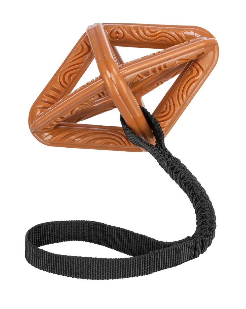 Přetahovadlo ve tvaru trojrozměrného kosočtverce, z odolné termoplastické gumy, na pružné nylonové rukojeti s amortizérem.
