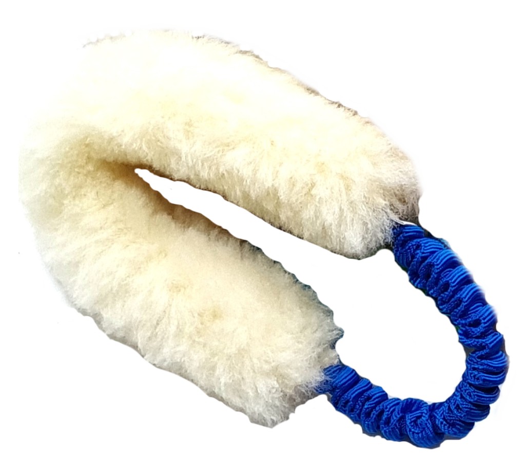 Přetahovadlo z pravé ovčí kožešiny, na kruhovém amortizéru.