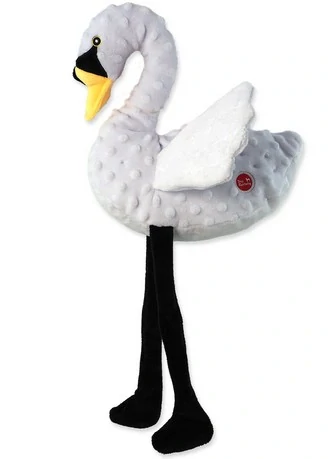 Plyšová labuť, plněná, s pískátkem v těle, se šustícími křídly a dlouhými, neplněnými nohami. Recyklační hračka - 82% materiálu z polyesteru je vyrobeno ze 100% recyklovaných plastových lahví.