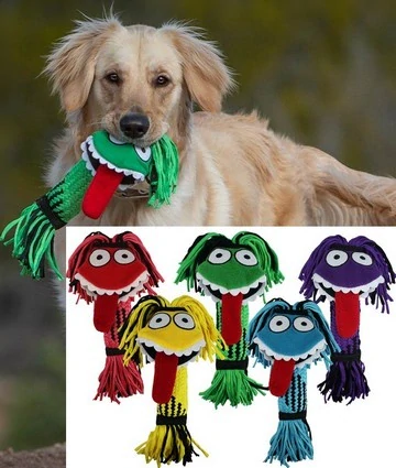Bláznivý textilní "bubák" - s podélným tělem, obsahujícím dvě velká pískátka, s rozcuchanými "vlasy", které pejska lákají ke hře. Šikovná hračka, na házení i aportování. Různé barvy dle aktuální dostupnosti skladu.
